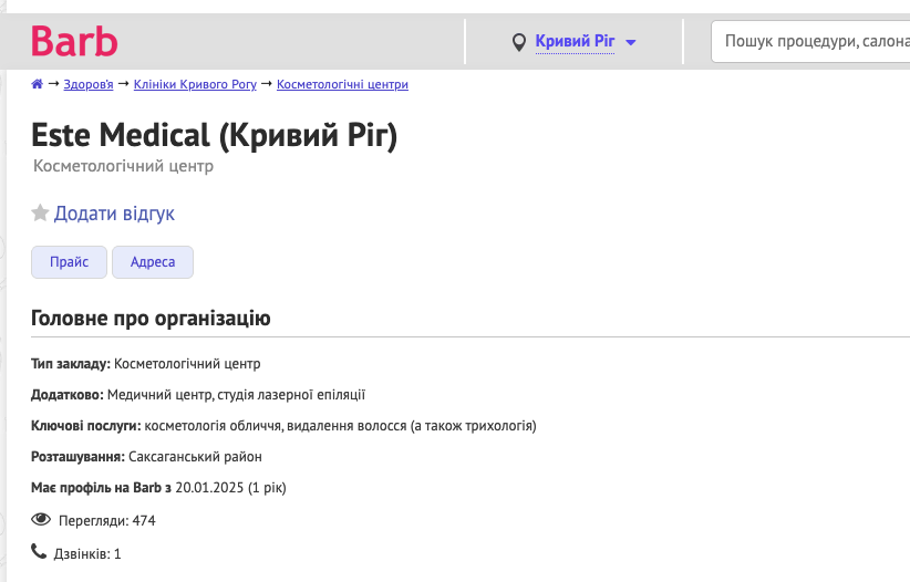 Завдяки поєднанню Barb.ua та Google Maps ми закрили «сліпі зони» у видачі. Тепер клініка EsteMed присутня у локальному пошуку, отримуючи органічні дзвінки та маршрути до дверей клініки без додаткових витрат на рекламу за клік.