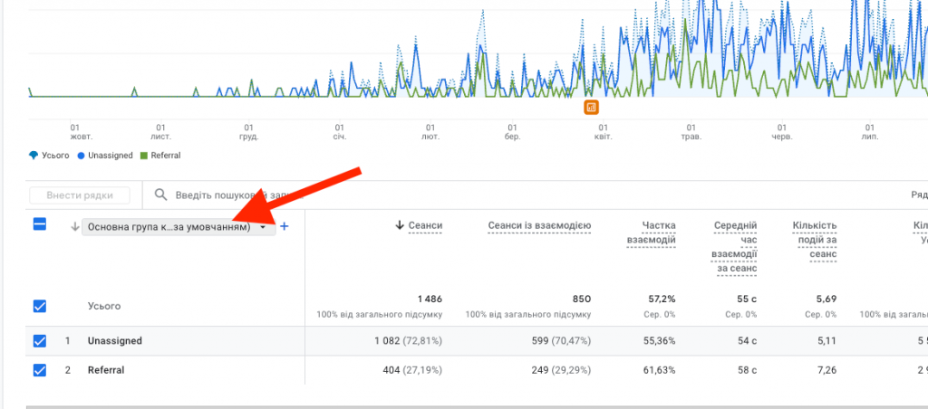 1. Виділяю всі рядки та змінюю Основна група… на Джерело сеансу