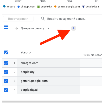 1. Бачу конкретно: з яких саме LLM ідуть переходи (наприклад, chat.openai.com / referral, perplexity.ai / referral і т.д.)